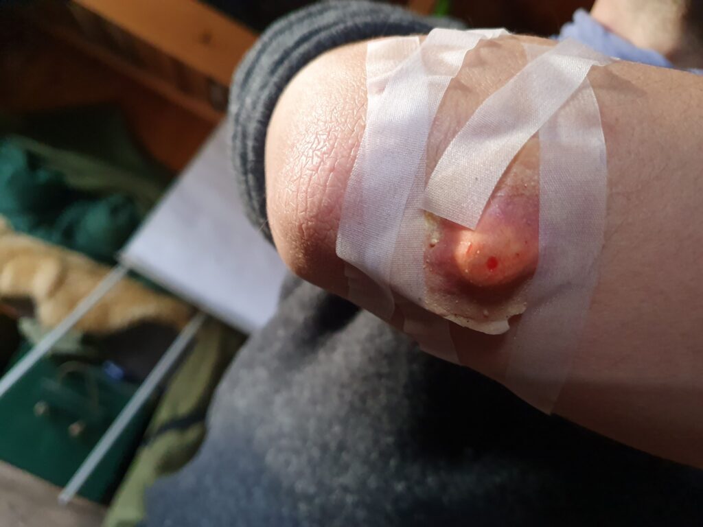 - Wundversorgung über die Tage. Wer noch laufen oder auf Hilfe warten muss, muss sich auch um eine Wunde ordentlich kümmern.
