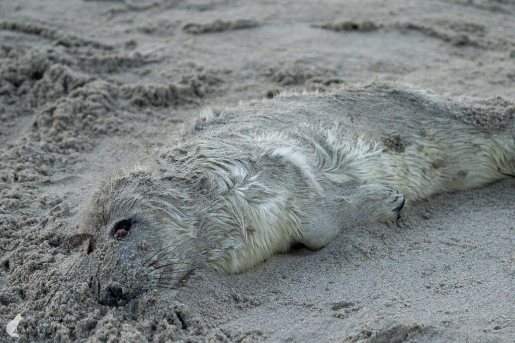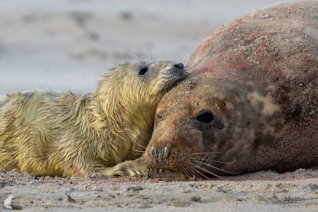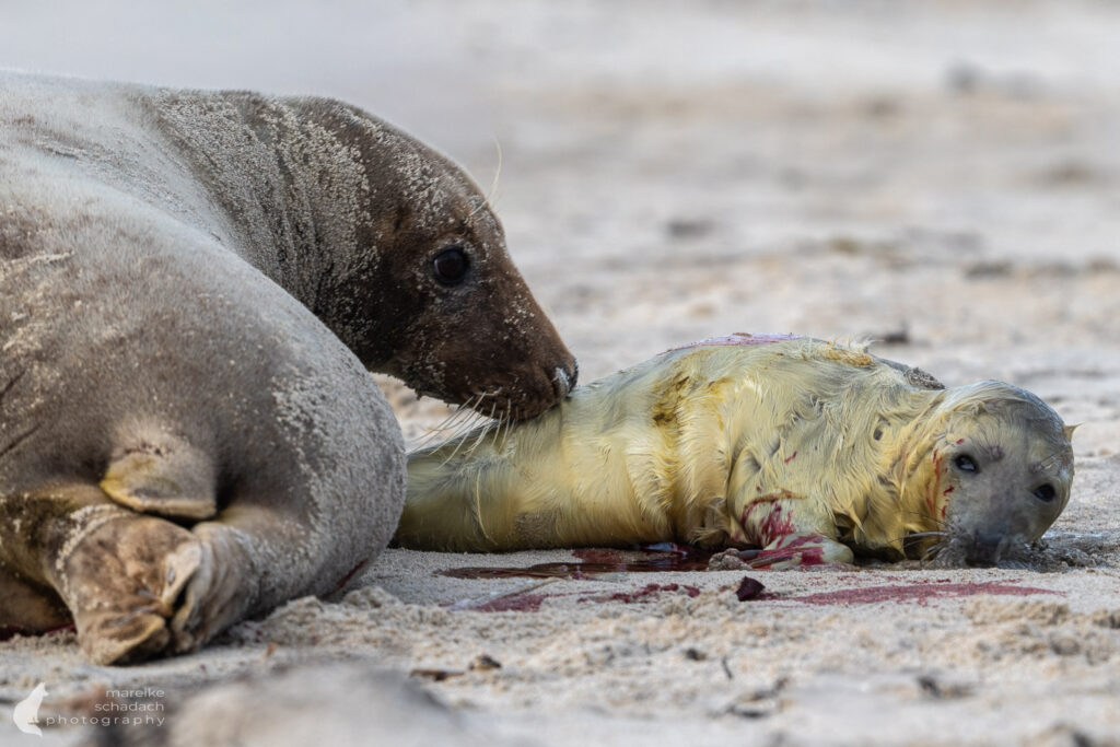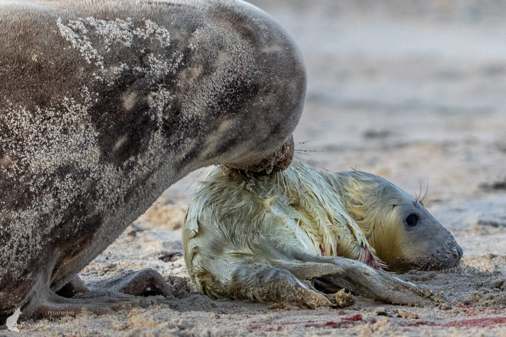 Die Wurfzeit reicht von November bis Januar. Als ich Anfang Dezember auf Helgoland-Düne war, waren bereits etwa 700 Jungtiere geboren und es gab viele verschiedene Altersstufen. Die besten Chancen, eine Geburt zu sehen, hat man Ende November.