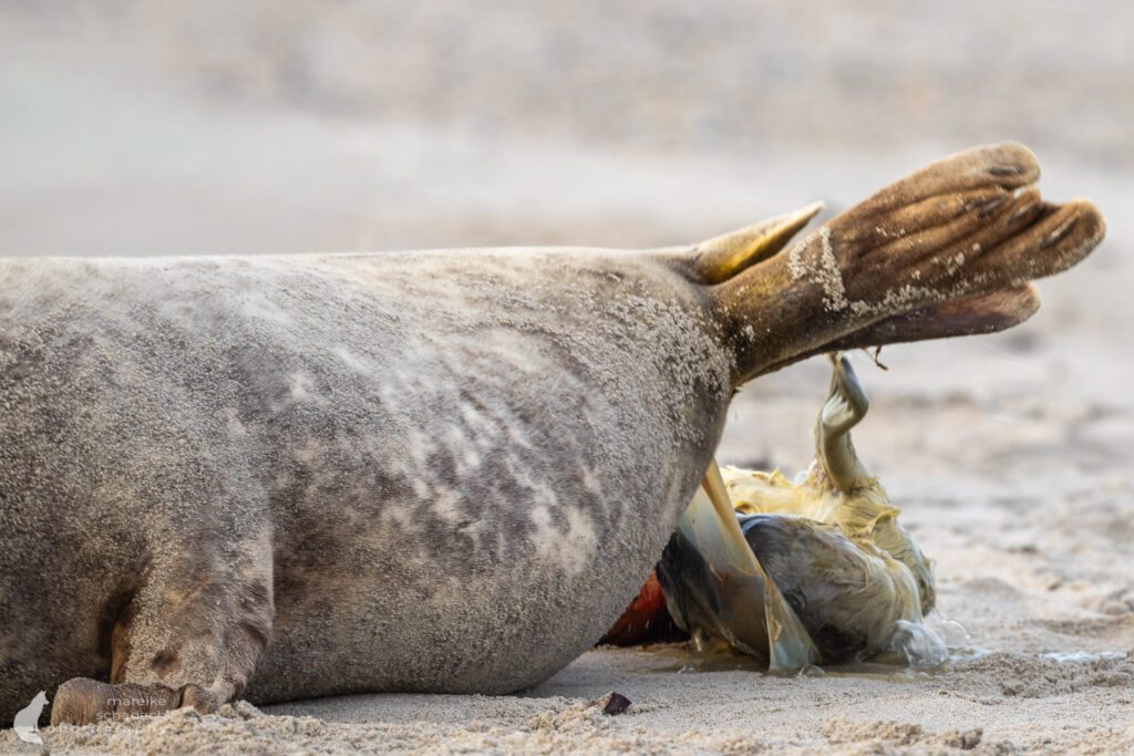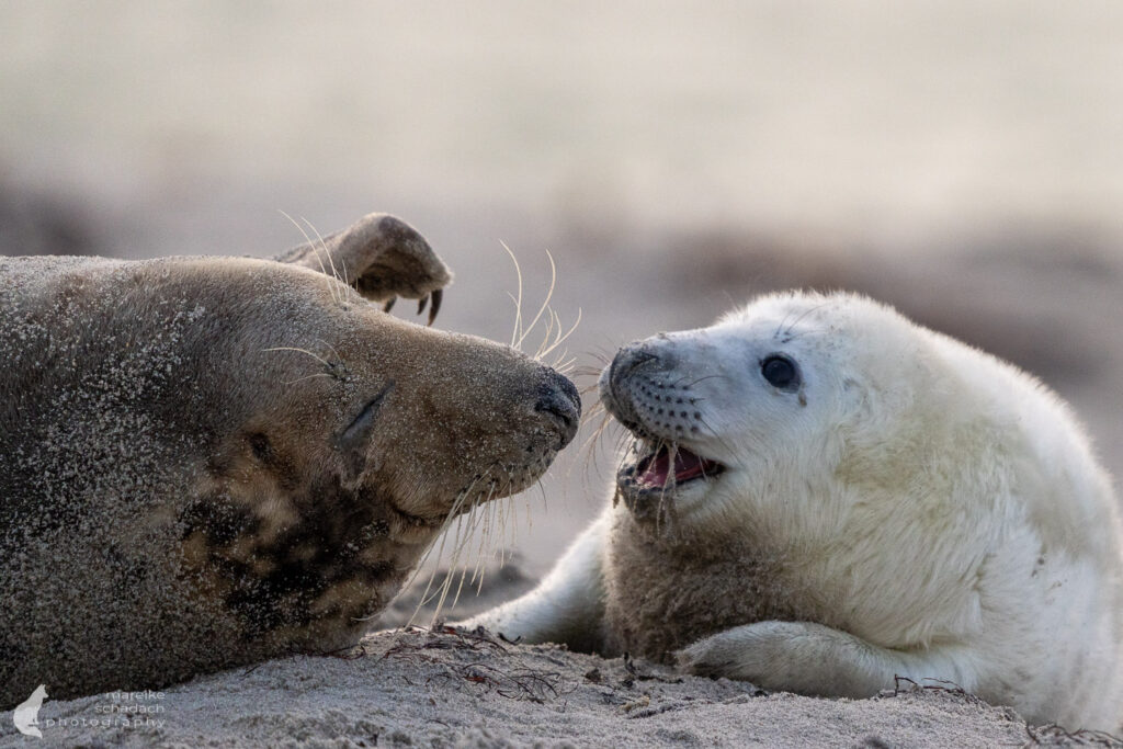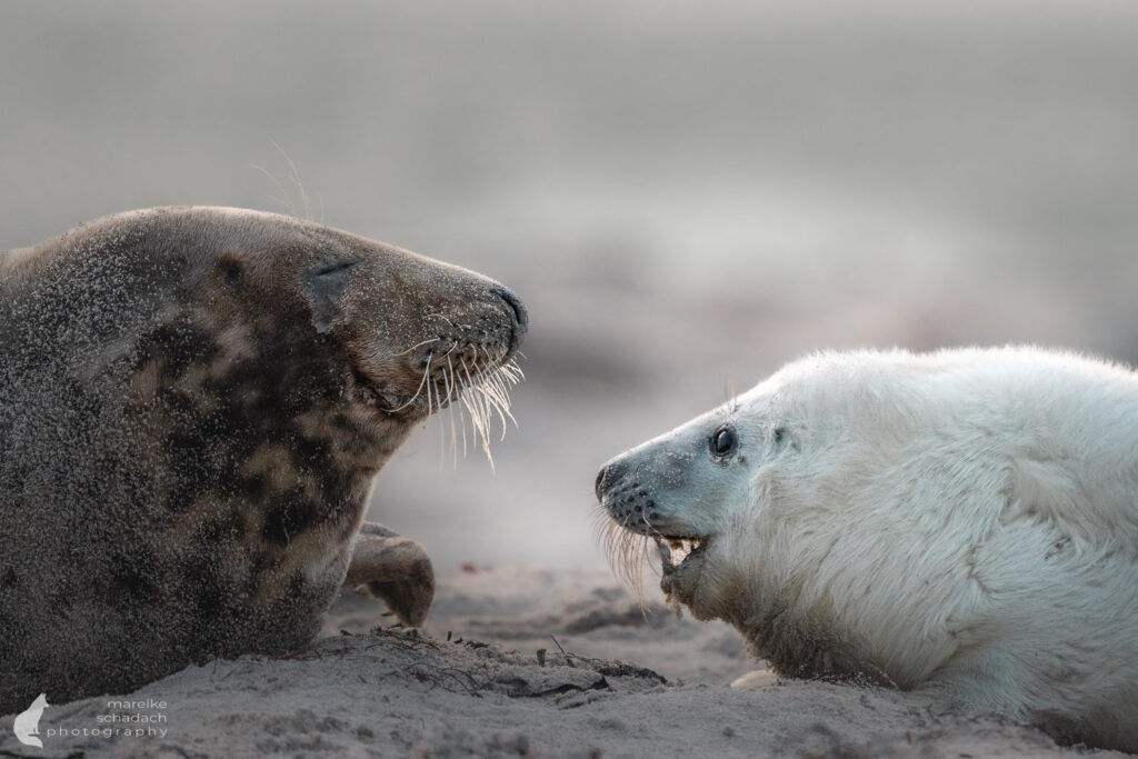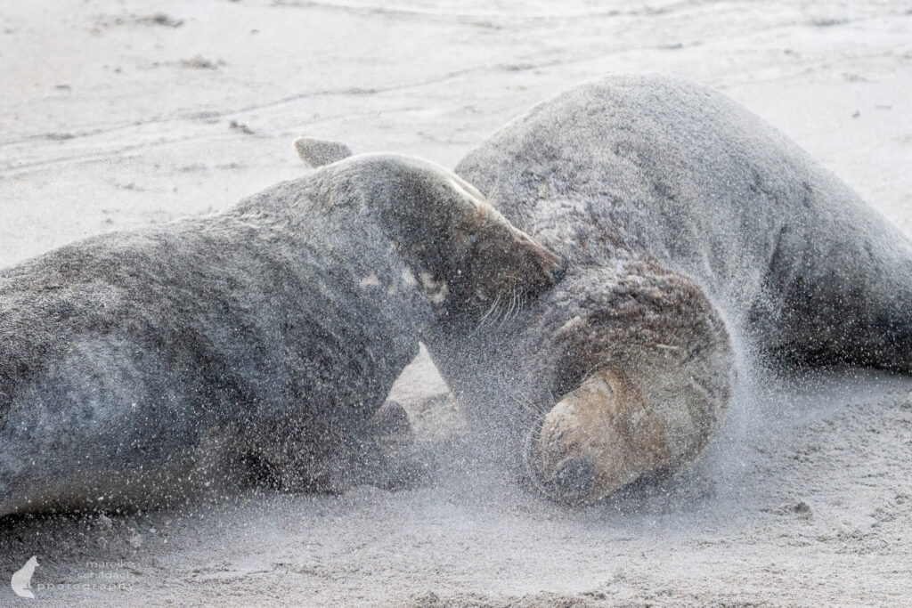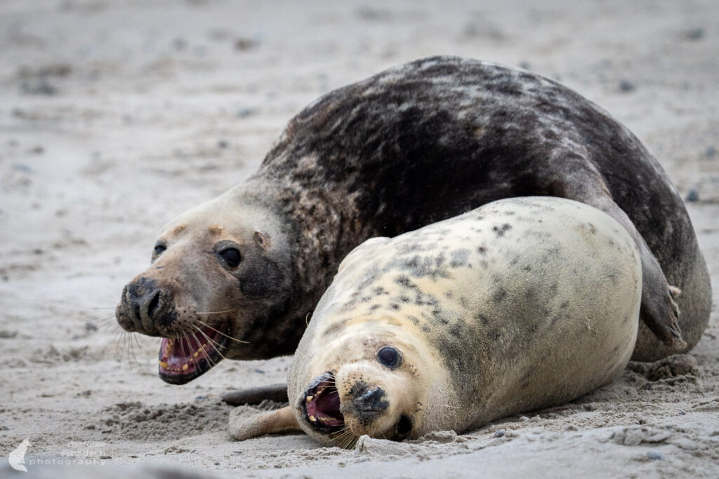 Die Wurfzeit reicht von November bis Januar. Als ich Anfang Dezember auf Helgoland-Düne war, waren bereits etwa 700 Jungtiere geboren und es gab viele verschiedene Altersstufen. Die besten Chancen, eine Geburt zu sehen, hat man Ende November.