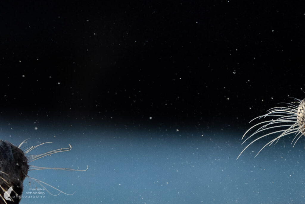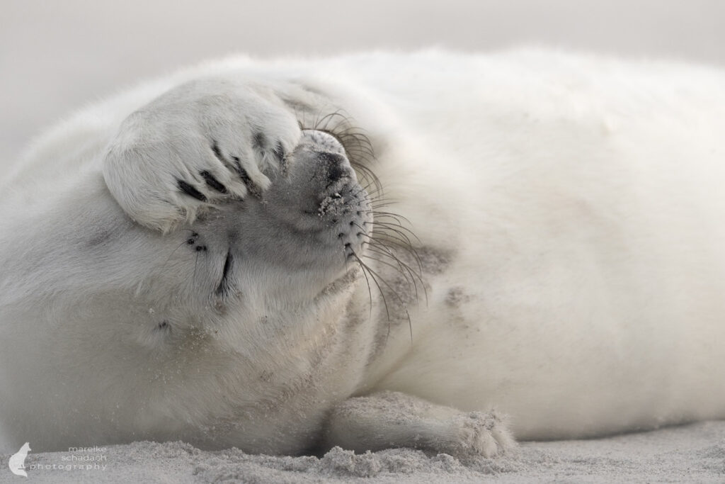 Ich sehe am Strand Jungtiere, die erst wenige Tage alt sind, und andere, die schon zu kleinen Speckrollen geworden sind. Sie wirken extrem unbeholfen an Land, aber sind schon sehr neugierig. Sie erkunden mit der Schnauze, tasten mit den hochempfindlichen Vibrissen, richten den Kopf nach jedem neuen Geräusch.