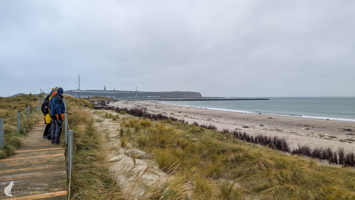 Am Nordstrand gibt es einen erhöhten Holzbohlenweg in den Dünen. Von hier hat man einen guten Überblick über den Nordstrand. Die Robben liegen teilweise sehr nah bis hoch in den Dünen. Manchmal robben sie sogar über den Panoramaweg.