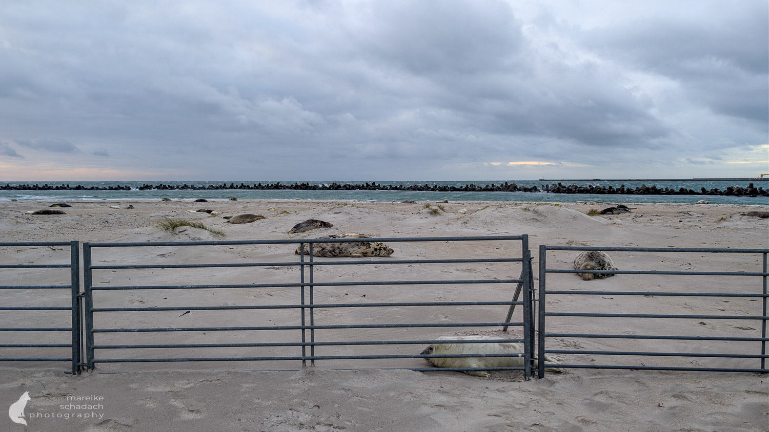 Da die Kegelrobben am Boden liegen, werden die Bilder am besten gemacht, wenn man auch selbst am Boden liegt. Das geht nur am Südstrand, wo der Metallzaun ist.