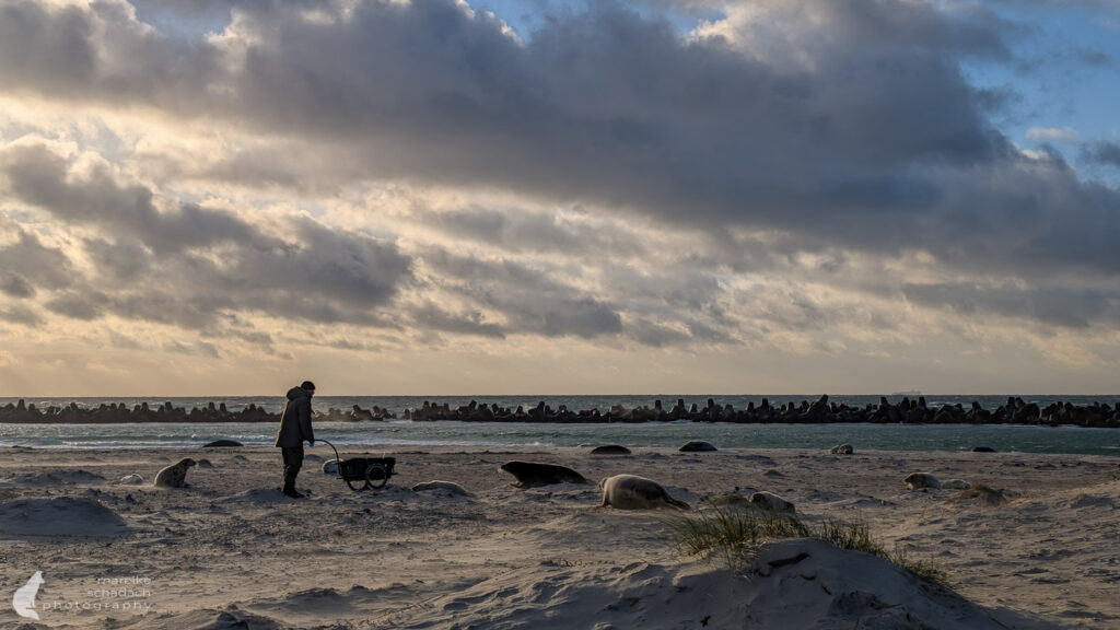 Helgoland-Düne ist im Winter kaum wiederzuerkennen. Die Sommerurlauber sind fort, zurück bleiben Stille, Wind und die größte Kegelrobbenkolonie Deutschlands. Jedes Jahr ab November wird dieser Strand zur wichtigsten Geburtsstätte der östlichen Nordseepopulation von den Kegelrobben (Halichoerus grypus).